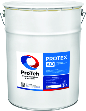 Второй слой - огнезащитная терморасширяющаяся краска Proteh Protex КО - однокомпонентный терморасширяющийся состав на органической основе, белого цвета.