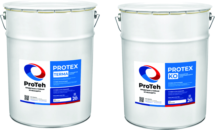 Атмосферостойкая конструктивная двухкомпонентная огнезащитная система Proteh Protex KTS представляет собой комбинированное покрытие, в состав которого входит огнезащитная теплоизоляционная обмазка Proteh Proterm и атмосферостойкий огнезащитный состав Proteh Protex А. Под воздействием температуры +250°С огнезащитный состав Proteh Protex А образует прочный армированный защитный слой пенококса, который является первым слоем защиты, далее идет теплоизоляционный слой обмазки Proteh Proterm, препятствующий прогреву металлических конструкций.